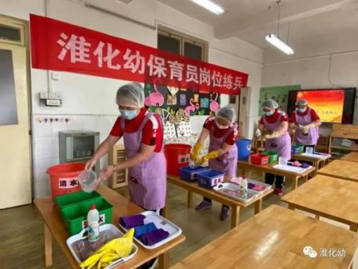 淮化幼儿园拥有一支师德高尚、业务精湛、乐于奉献的高素质师资队伍,教师全部具有幼儿教师资格证及大专以上学前教育文凭,本着“塑形像、强素质、严管理”的工作思路,在注重师德师风建设的同时,抓实教职工业务技能培训和教师基本功训练。多名教师获得:安徽省微课大赛一等奖,安徽省自制玩教具比赛二等奖,田家庵区及淮南市“少儿艺术节”、“娃娃乐故事会比赛”一、二等奖,淮南市“科学乐”比赛二等奖,淮南市保教成果展二等奖,省市区级教育论文比赛一、二等奖等荣誉称号。